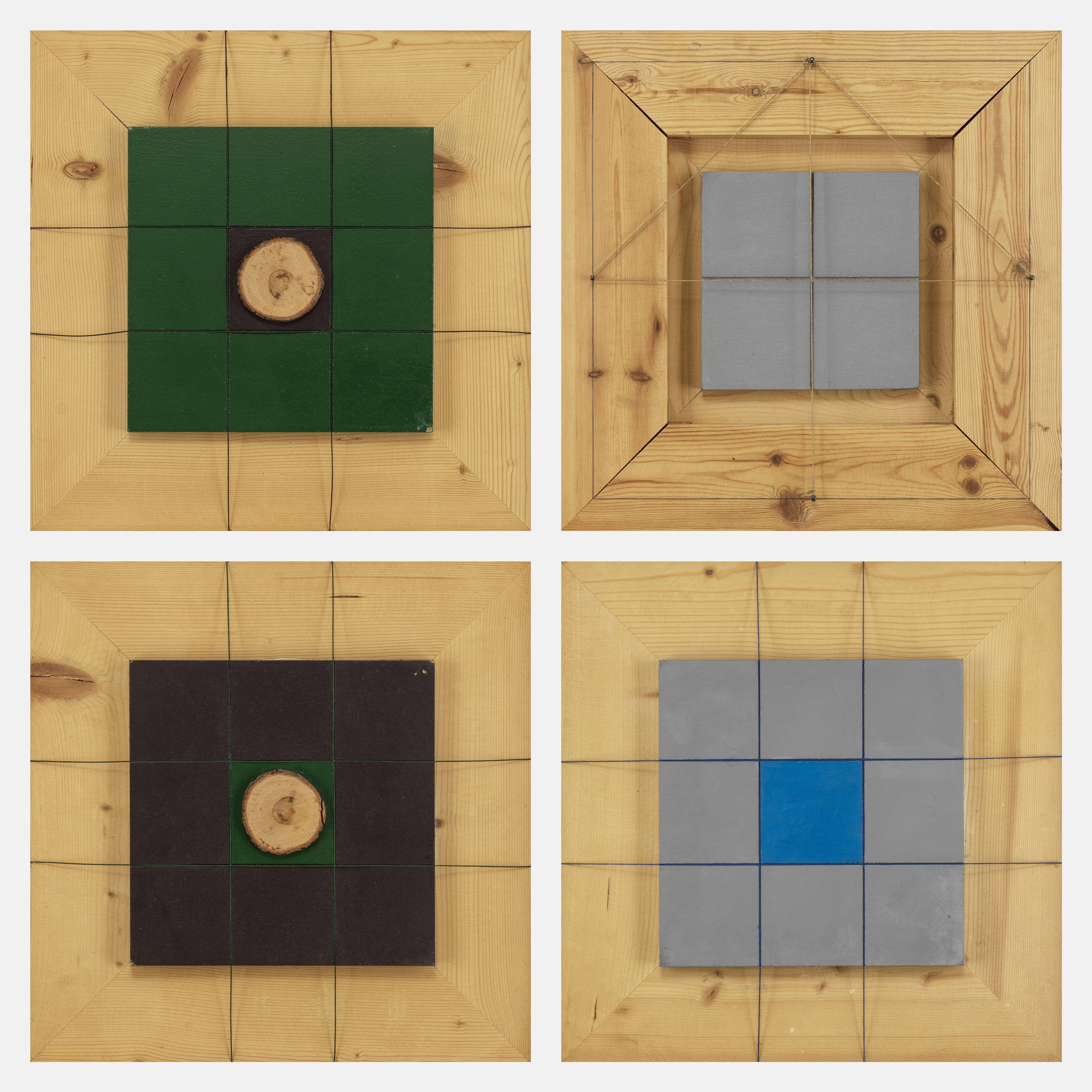 Deux assemblages, galets fendus en deux et collés sur un support...