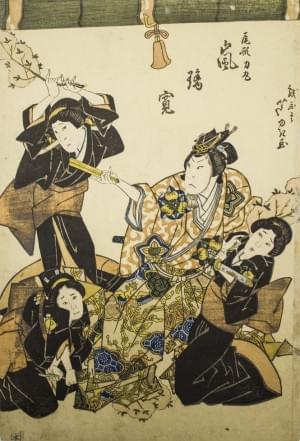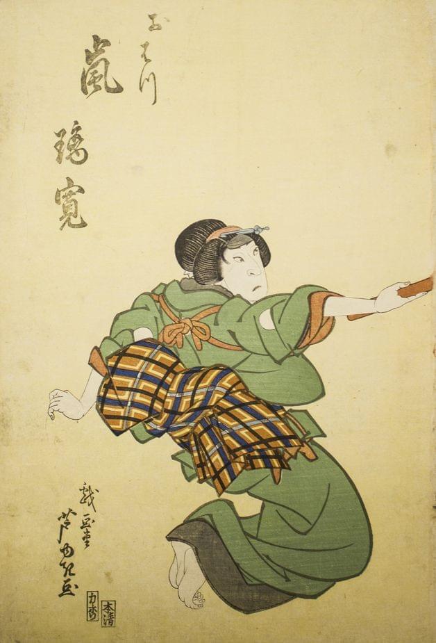 Acteurs de kabuki, deux estampes en couleurs, Japon, époque Edo (1603 – 1868), 36x24 cm