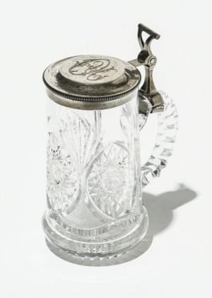 173. Chope en cristal taillé à couvercle en argent gravé d'un monogra...