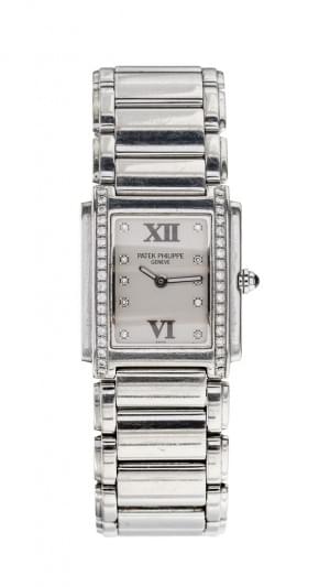 221. Patek Philippe, twenty 4, montre bracelet rectangulaire à quartz...