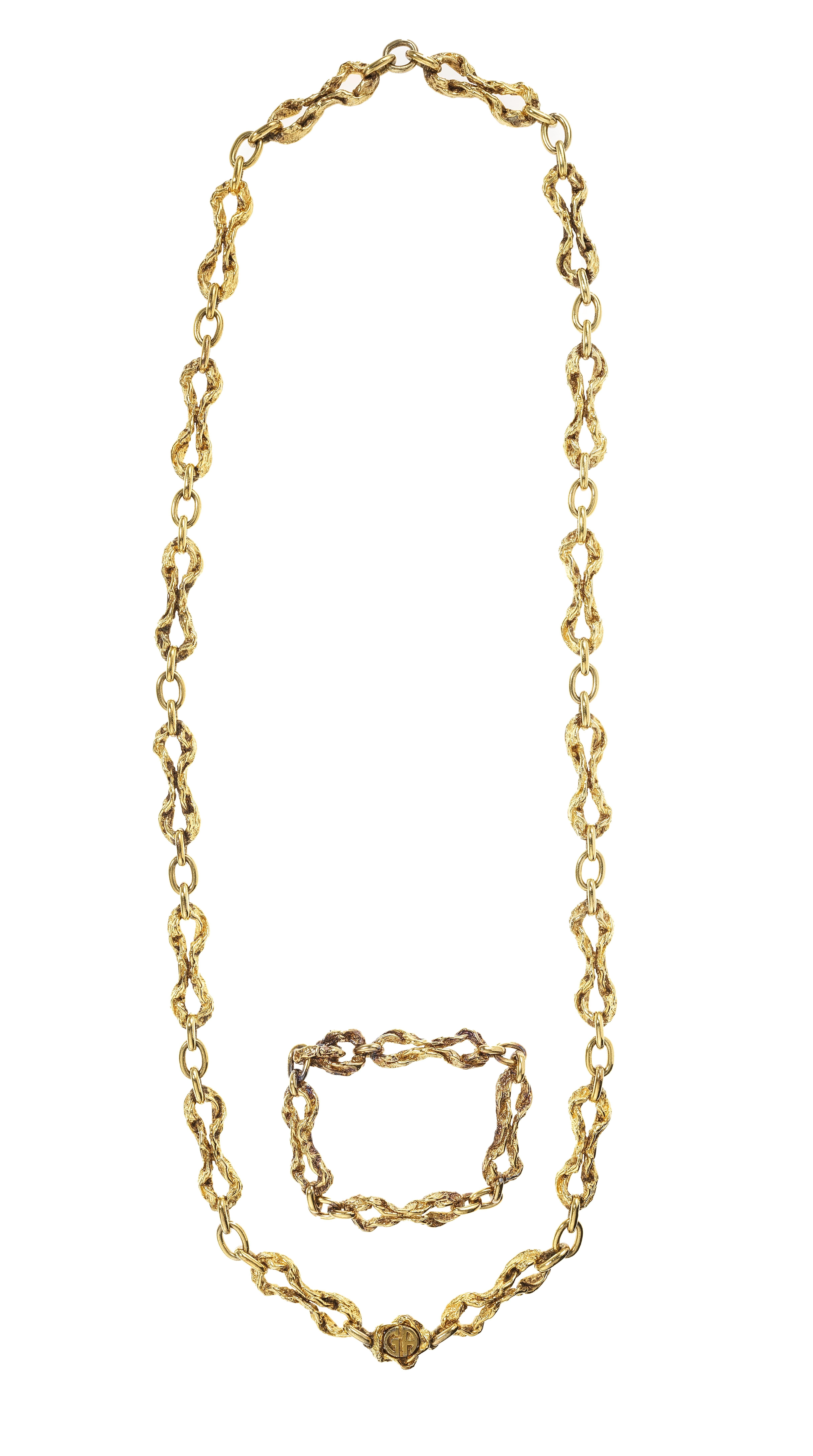 3252. Gilbert Albert, ensemble d'un collier et d'un bracelet à maille stylisée