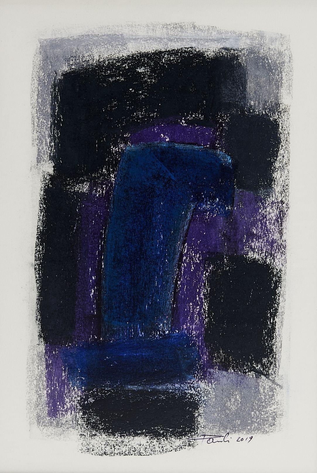 Visage de l'âme en jaune, pastel gras fixé sur papier, signé et...