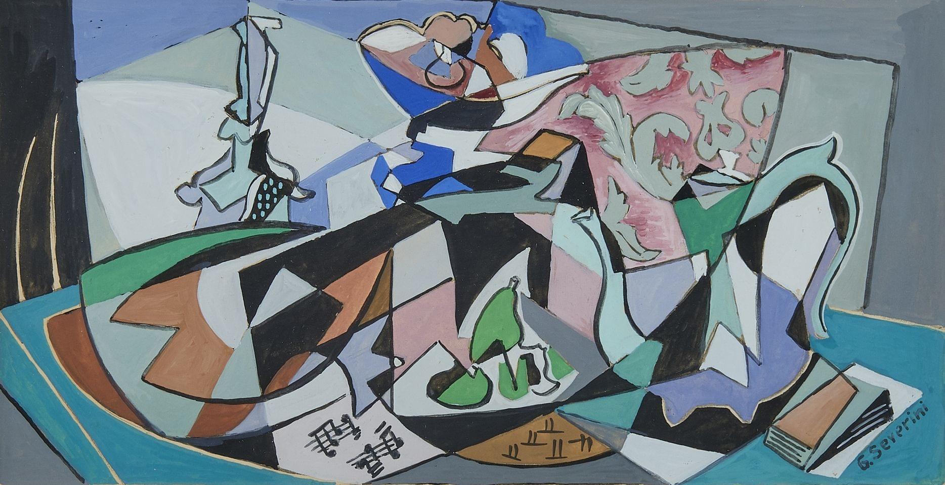 Composition cubiste, gouache sur papier, signée, 17x33 cm. Nous remercions les archives Gino Severini, Rome-Paris, conservées par Mmes Romana Severini et Daniela Fonti de nous avoir confirmé l'authenticité de l'œuvre. Un certificat d'authenticité sera remis à l'acheteur.