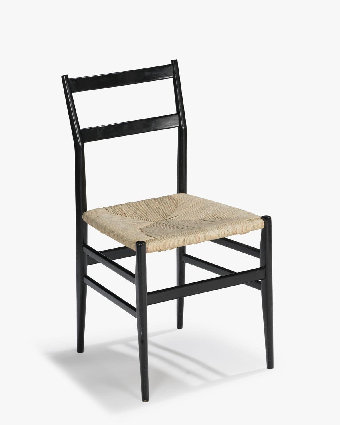 Chaise Superleggera, bois laqué noir, paillée