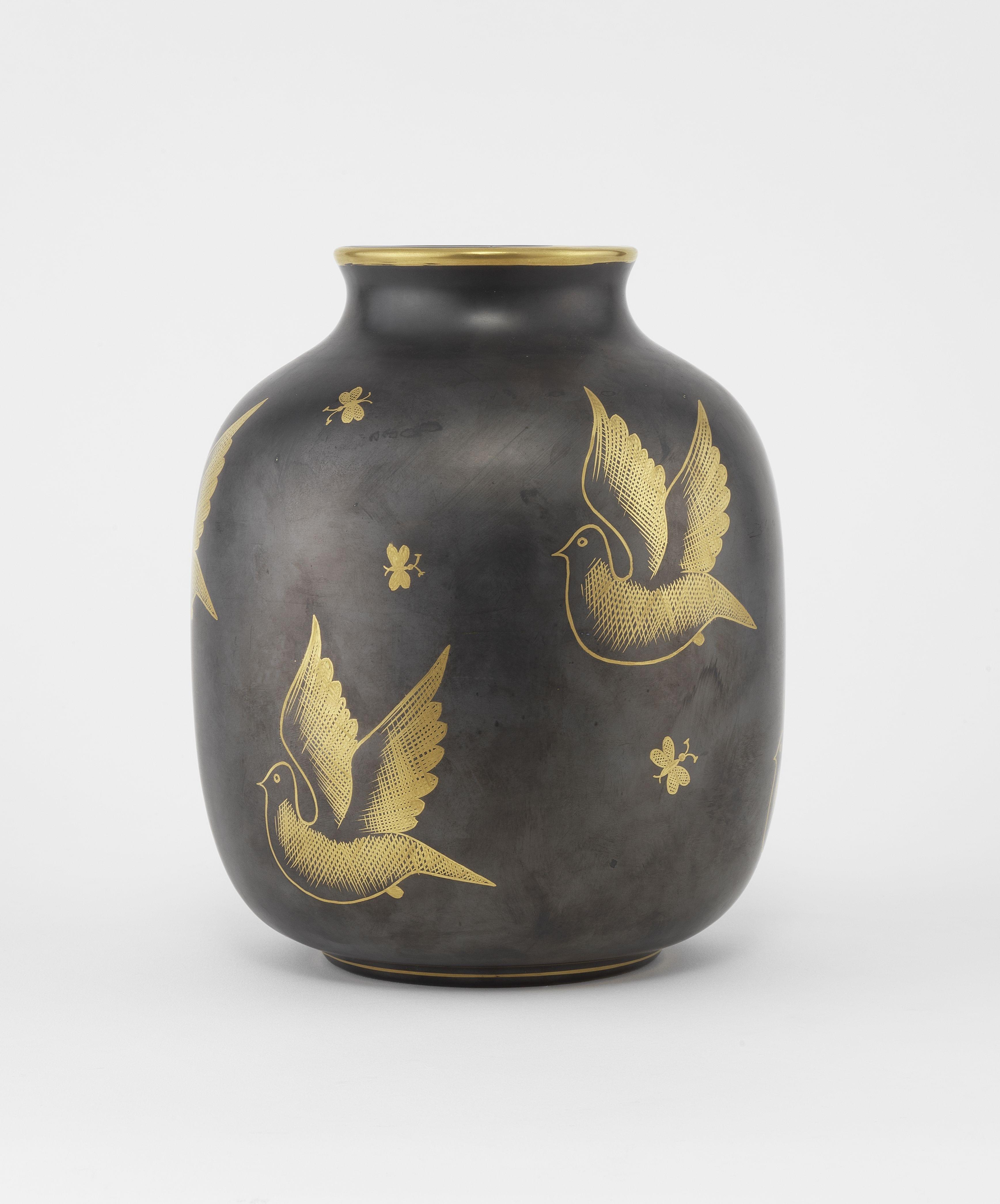 Vase à section rectangulaire à décor d'un satyre et nymphes dans...