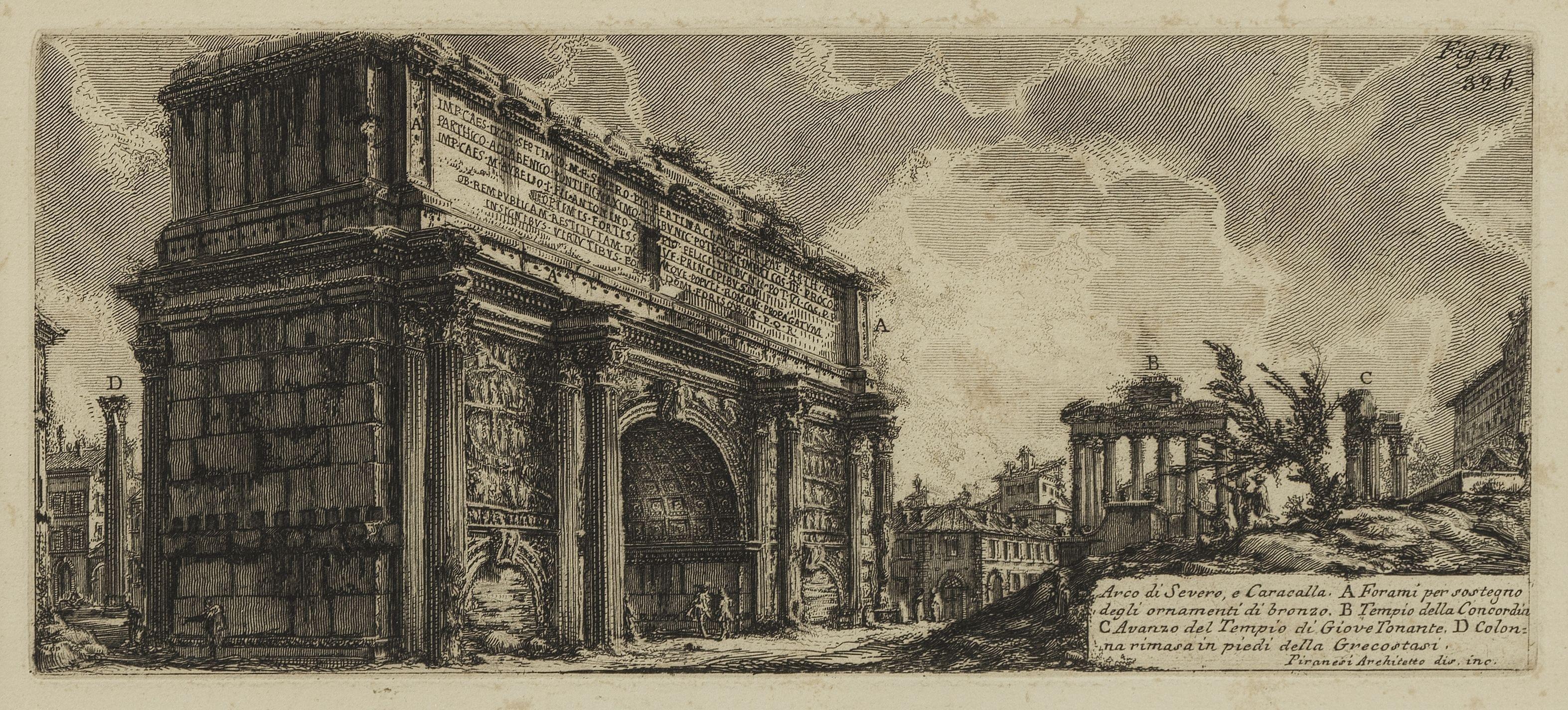 Arc de Septime Sévère à Rome, Figure II, gravure sur papier, Italie, 1756, 13.5x29 cm