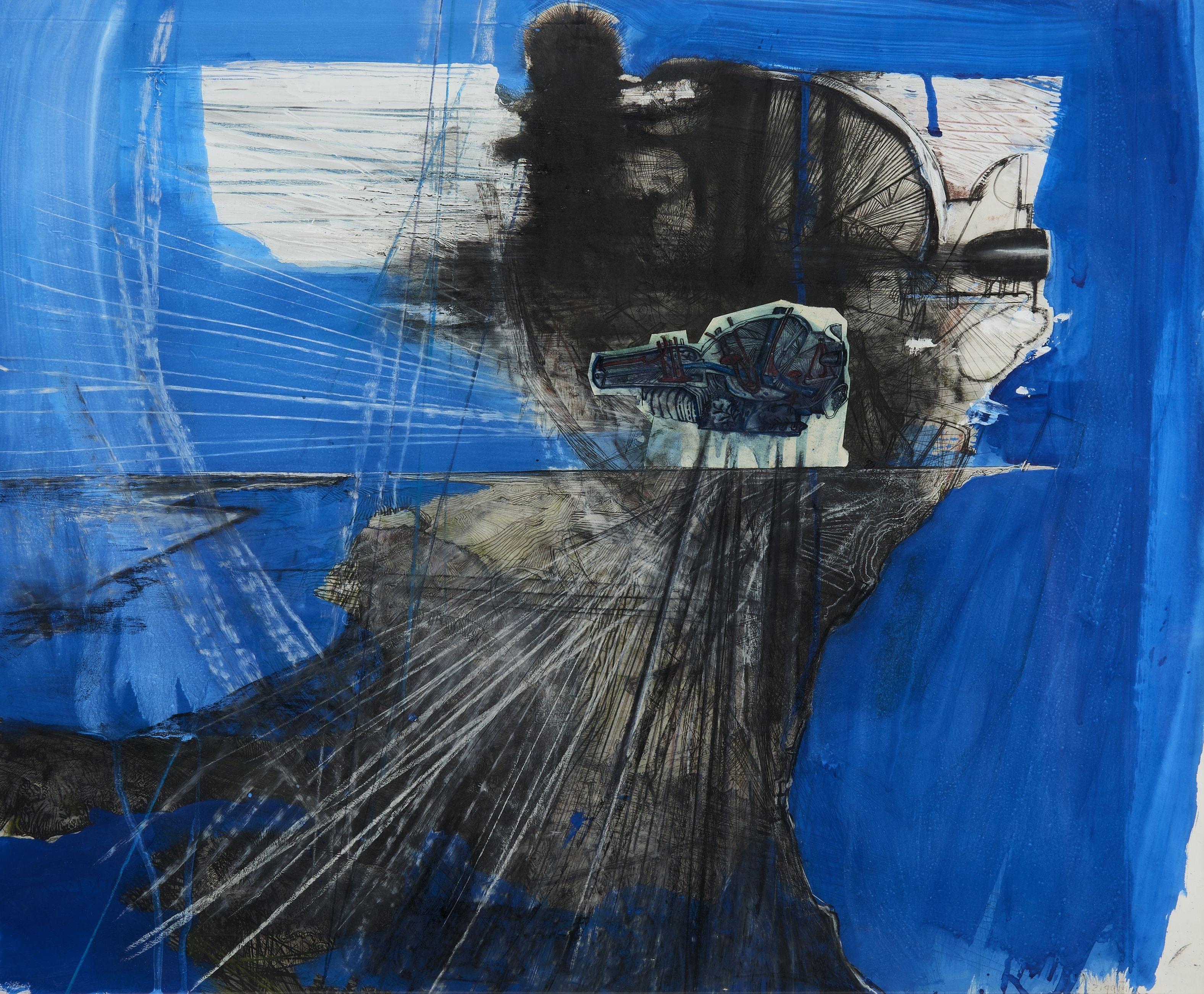 La farfalla e l'astronave, 1989, technique mixte, signée, 91x110 cm