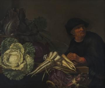 Marchand de légumes, huile sur toile, signée et datée 1664, 45x1...