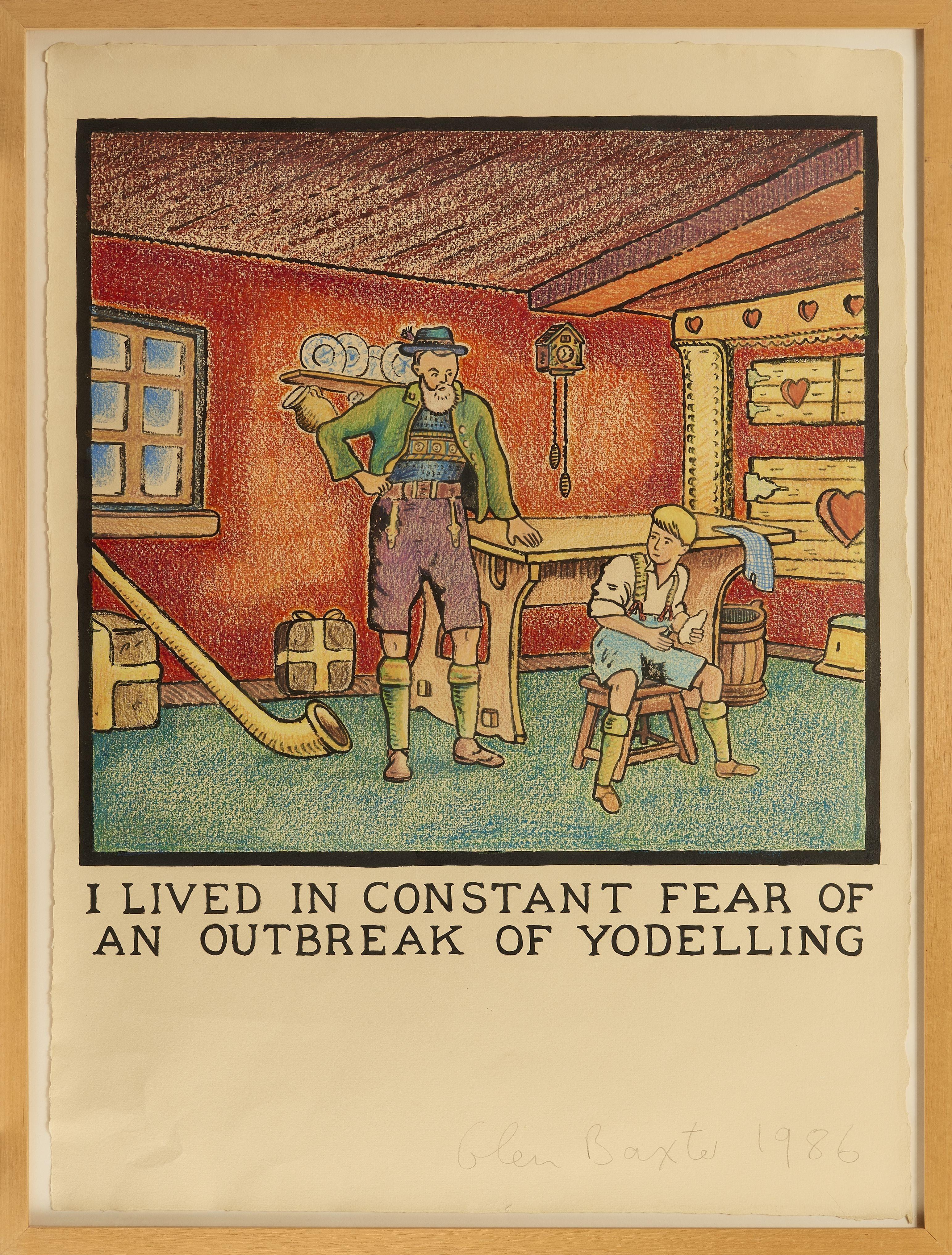 Variacions, papier peint, verre, bois et métal, signé, H 78 cm
