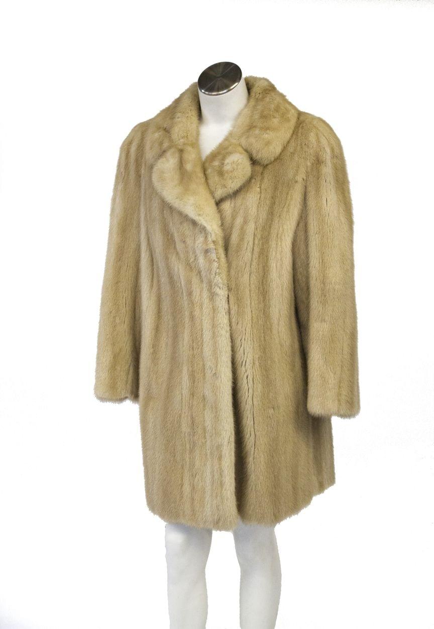 Vison rasé beige, intérieur en tissu beige, attaches à clips