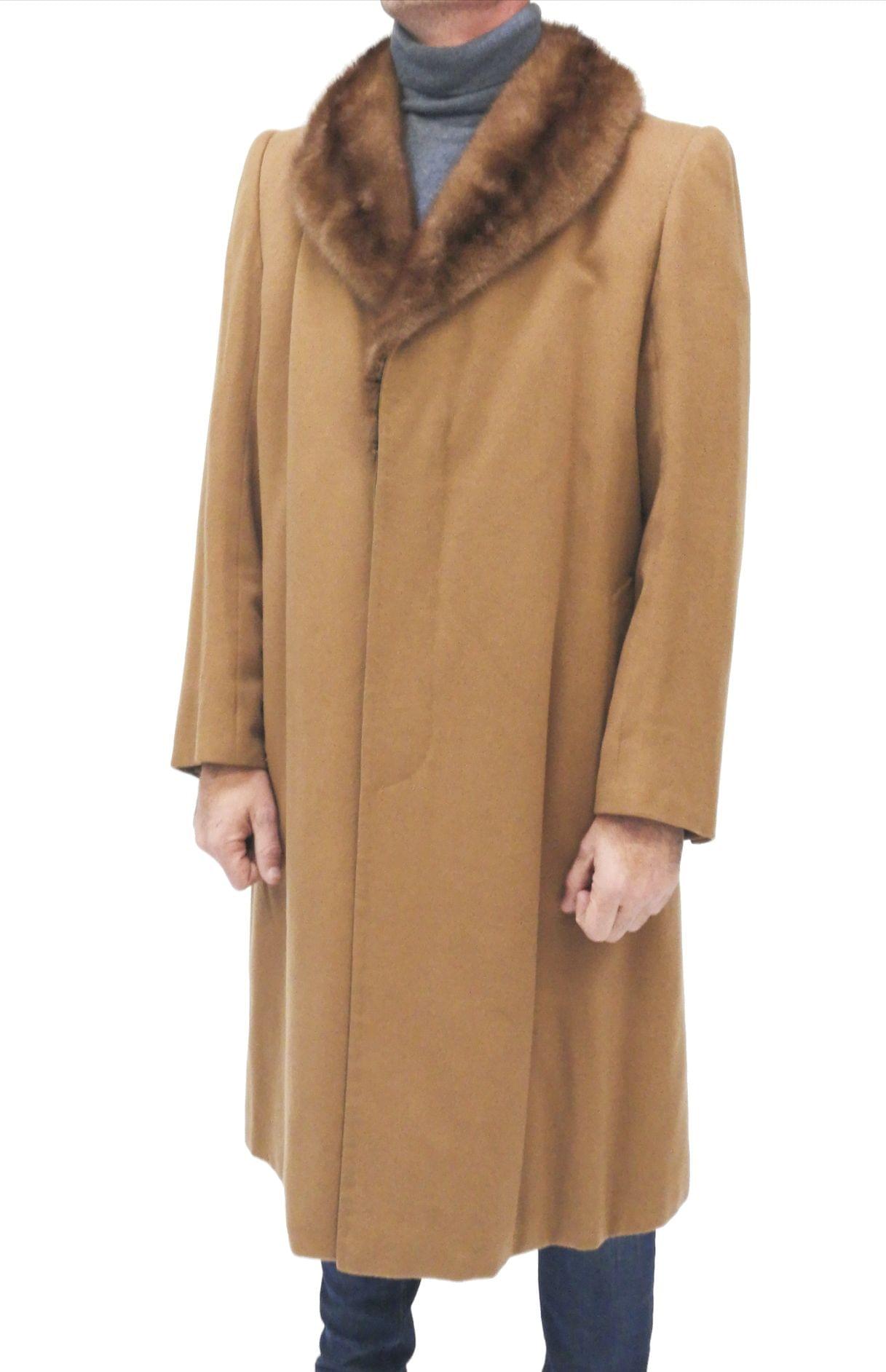 Intérieur doublé de vison marron, poches latérales et fermeture...