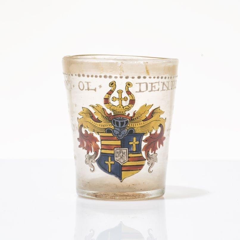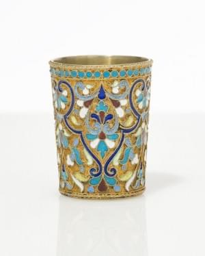 138. Gobelet à vodka et cuillère à épices à décor de rinceaux en émau...