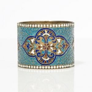 3598. Ensemble de liens de serviette : l'un à décor géométrique en éma...