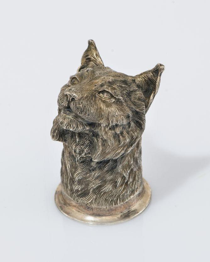 349. Fred Paris, broche à motif de tête de chat sertie de pierres ver...