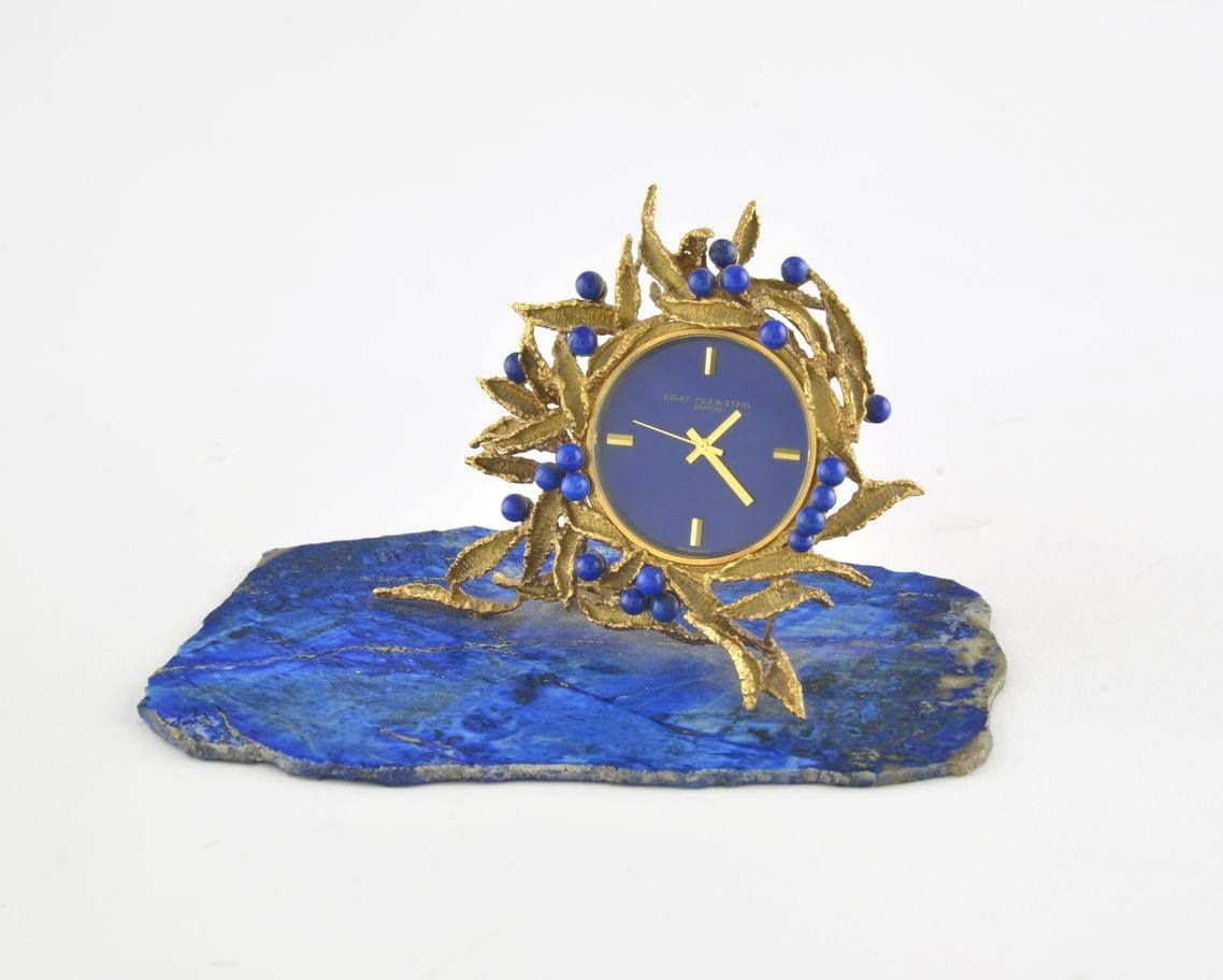 112. Cartier, broche fleur en lapis lazuli et sertie d'un diamant tai...