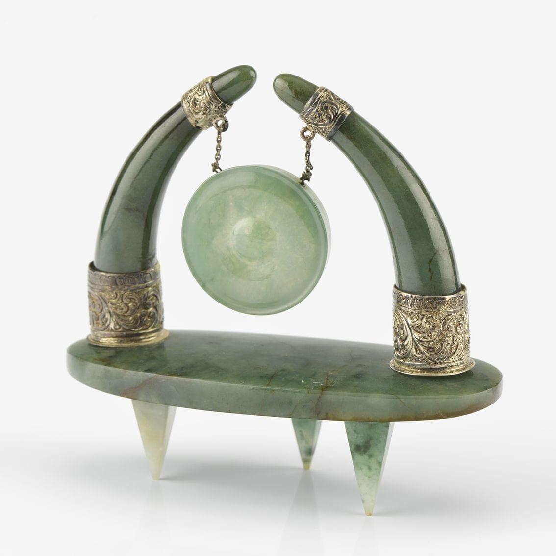 Jade Néphrite, posé sur une base ovale, monture métal, H 11 cm