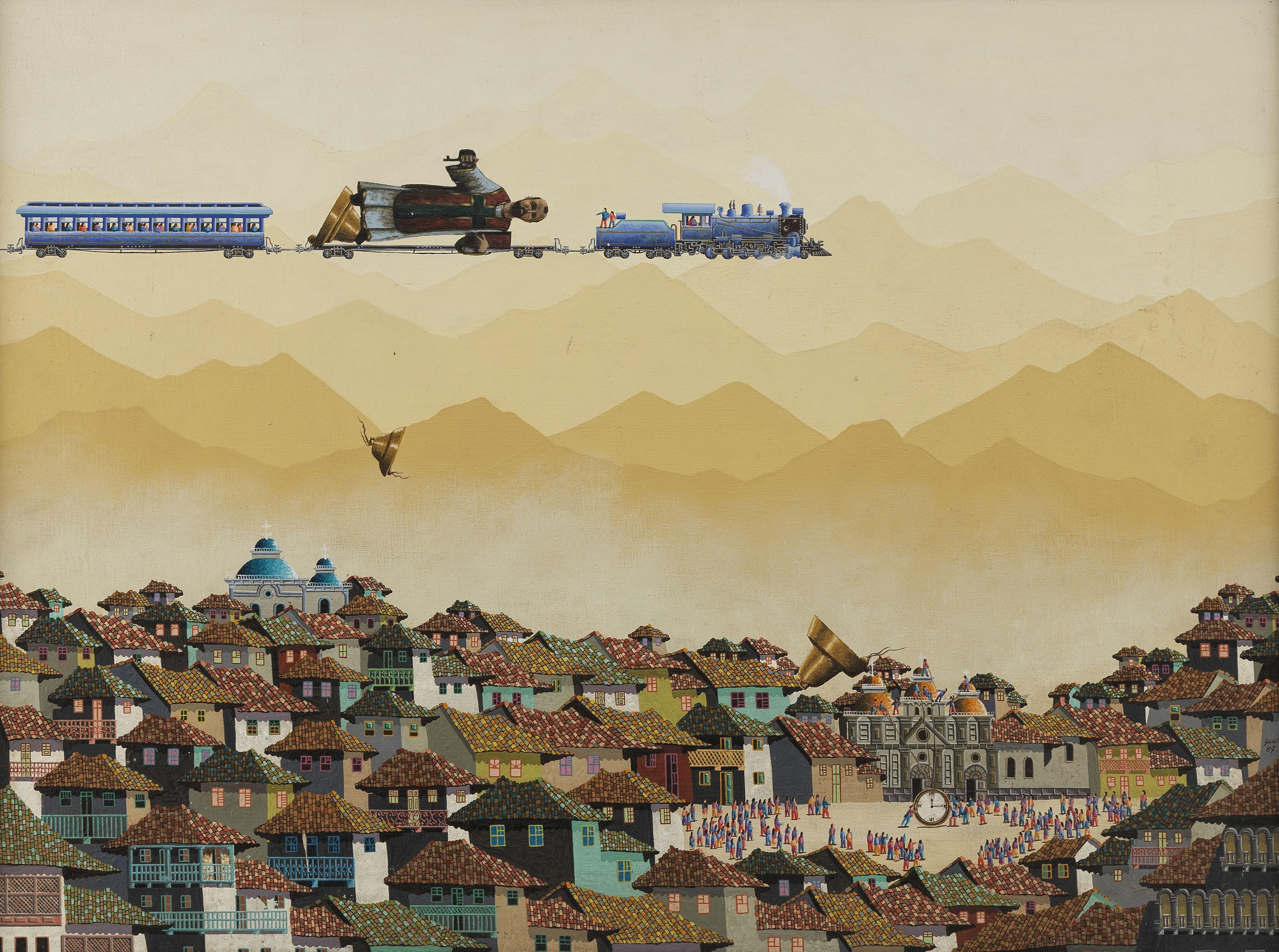 A la misma hora, huile sur carton, signée, datée et intitulée au dos, 49x60 cm
