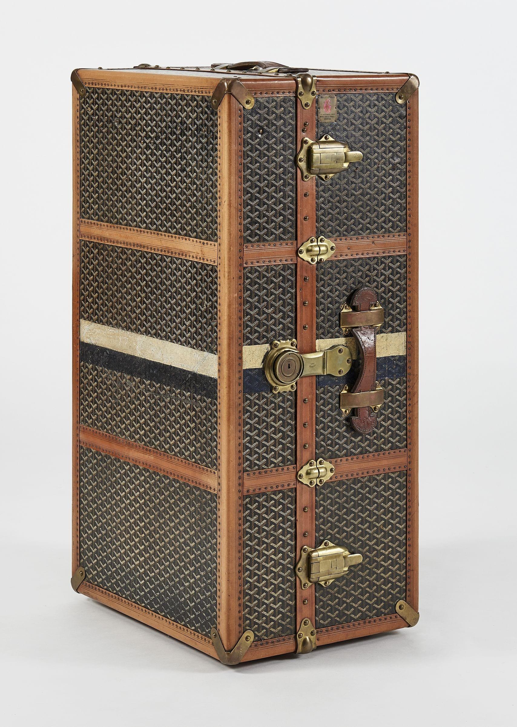 Toile imprimée à damier, renforts en bois, garniture en métal, p...