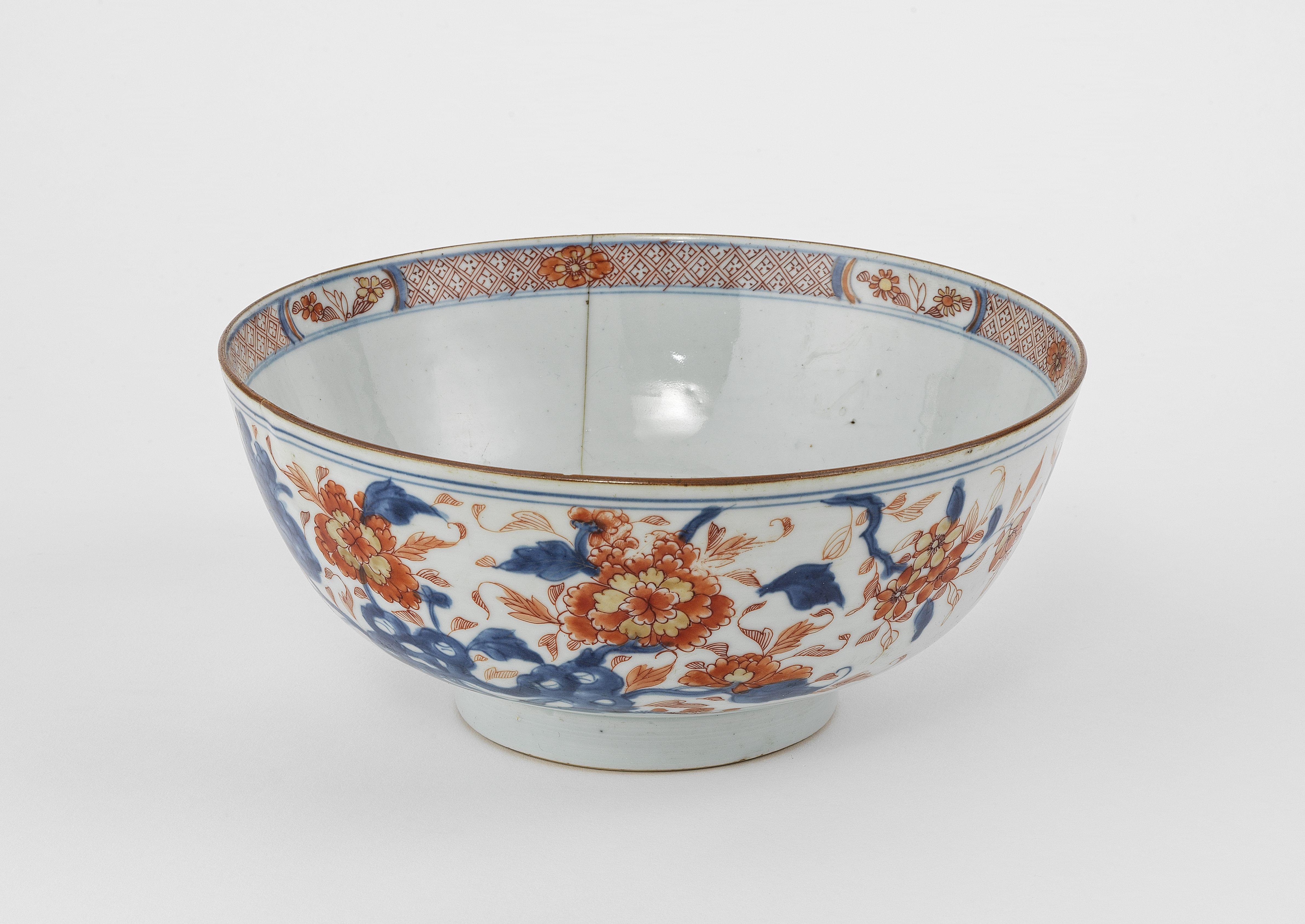 144. Important bol à punch sur présentoir, ses six tasses et son kovs...