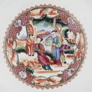 Porcelaine émaillée polychrome à décor de scènes animées, D 26 cm