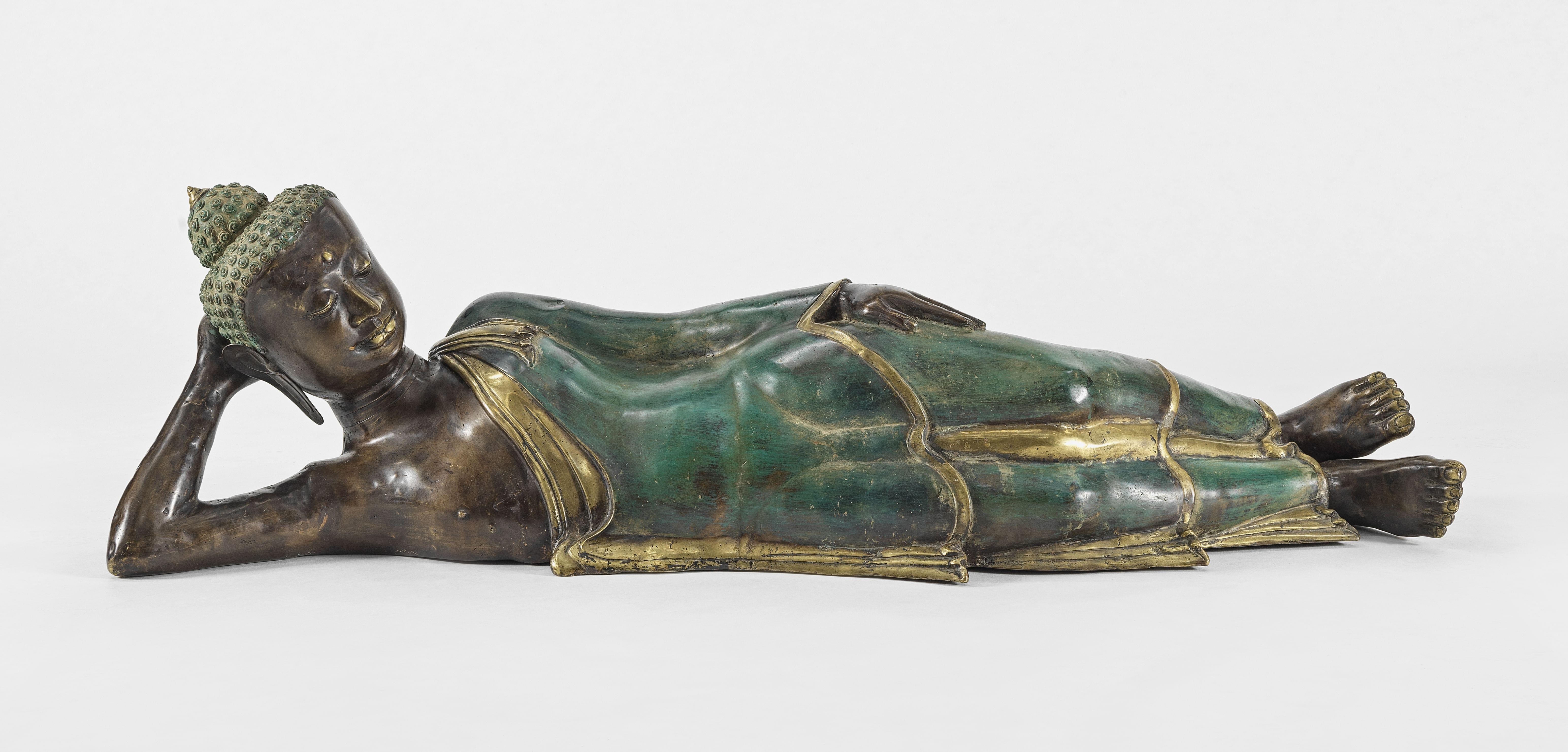 A décor en bronze patiné de têtes de béliers et guirlandes de fl...