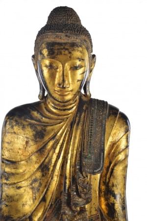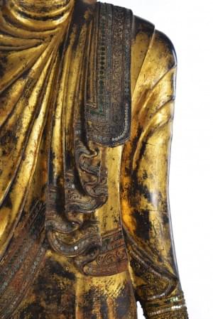 Bois doré et incrustation de verre, Birmanie, fin XIXe début XXe s, H 151 cm