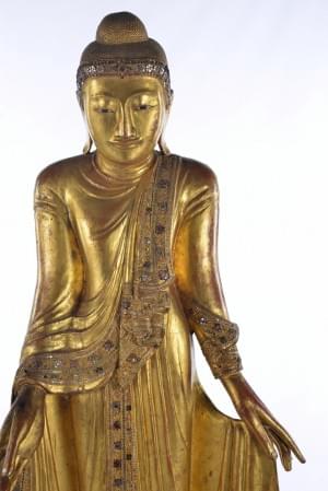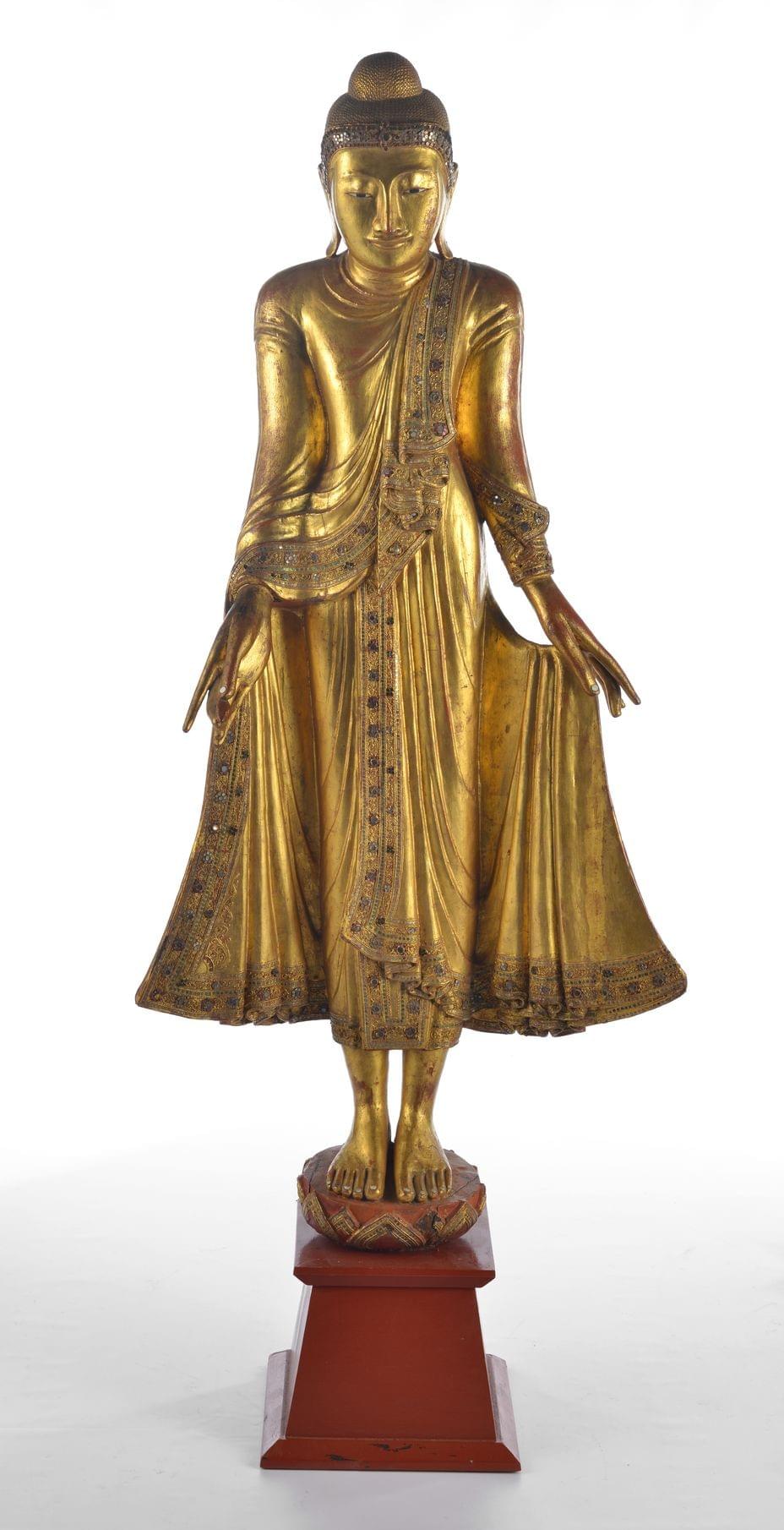 Bois doré et incrustation de verre, Birmanie, fin XIXe début XXe s, H 151 cm