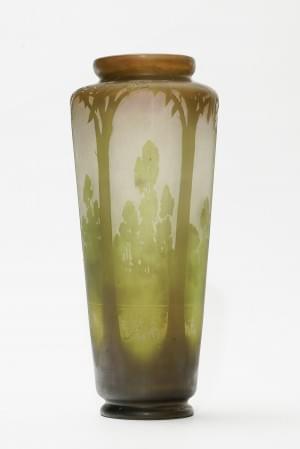 Verre multicouche dégagé à l'acide à décor d'un paysage lacustre...