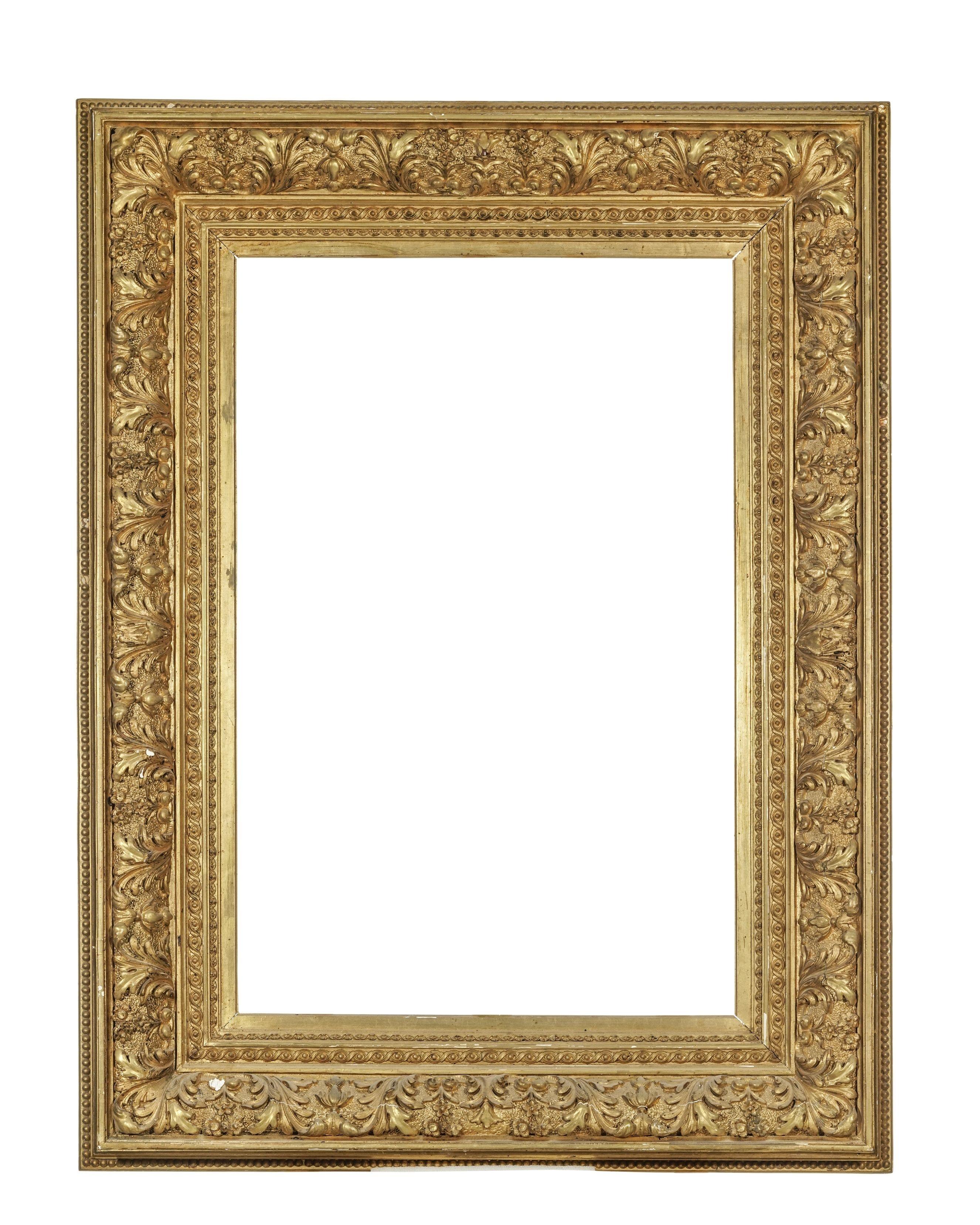 Stuc doré à décor d'une frise d'oves et placage de bois, 27x36,5