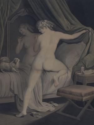 Nu de dos et amour endormi, paire d'estampes et fusains sur papi...