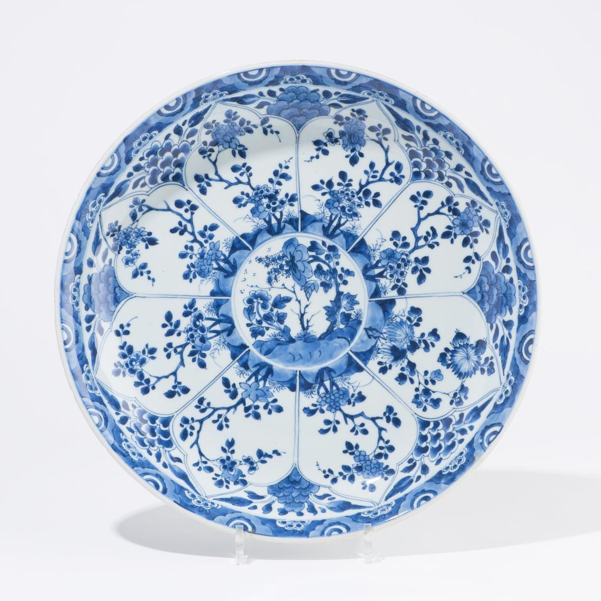 187. Plat à barbe à décor d'Amour dans un paysage et de couronnes de...