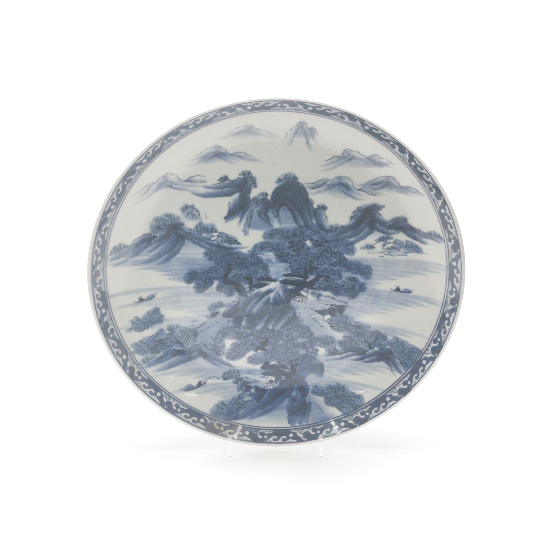 Porcelaine bleu blanc à décor d'un paysage, D 42 cm