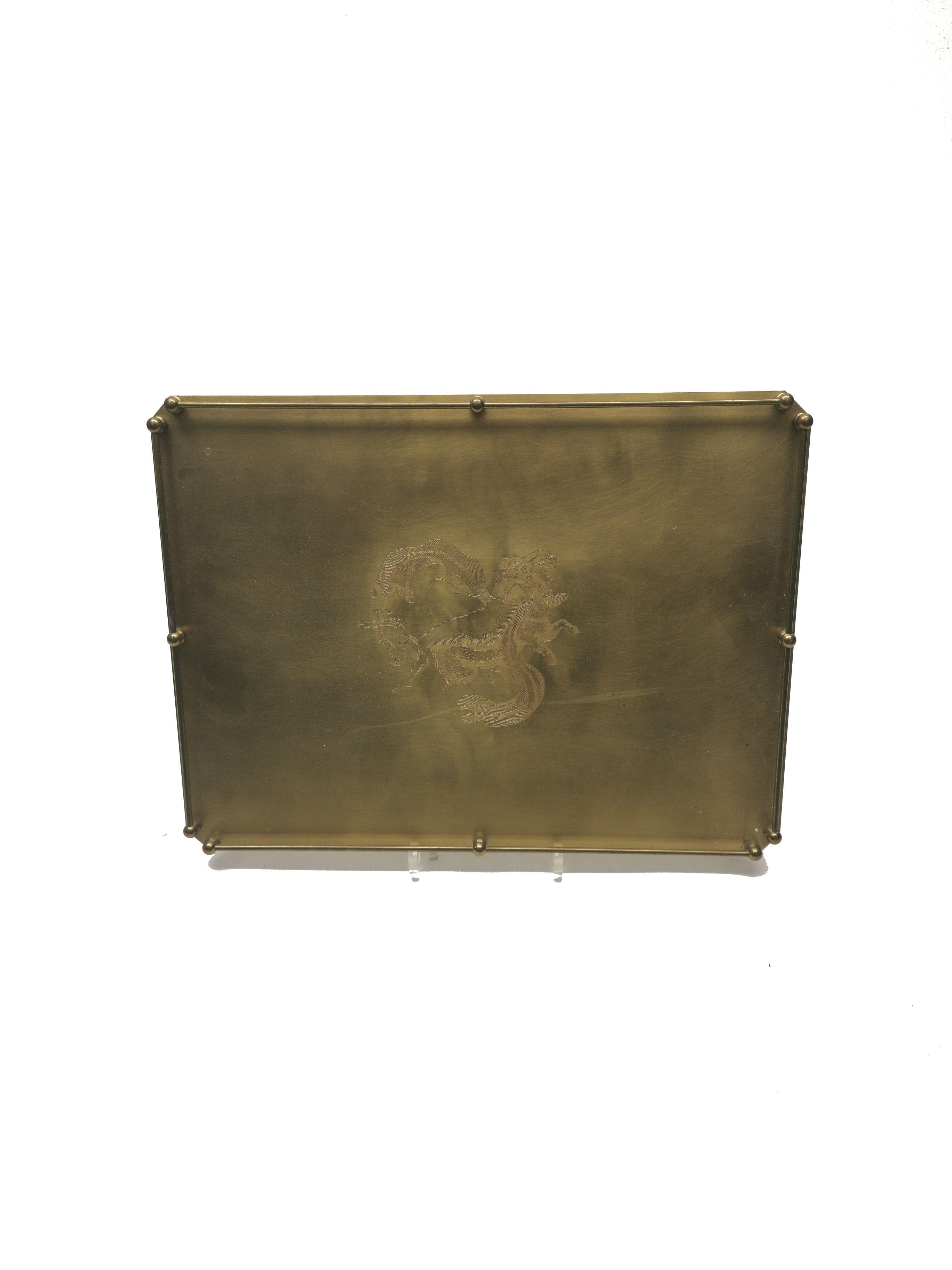 A décor d'une femme enlevée par une chimère, laiton gravé, 30x40 cm