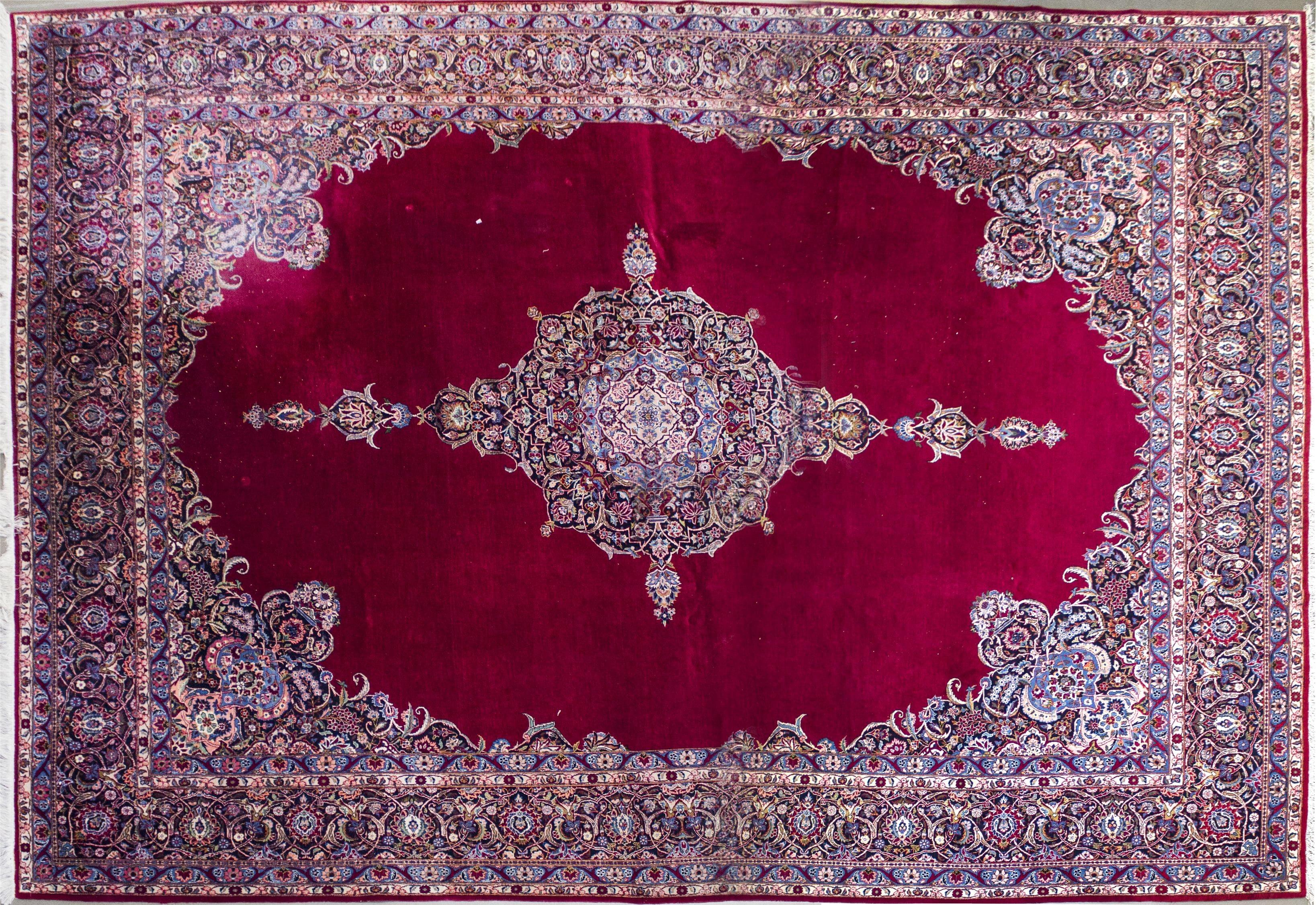 A décor d'un motif central sur fond rouge brique, 470x340 cm