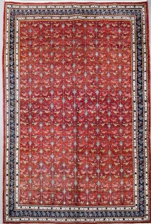 A motifs d'oiseaux et d'animaux stylisés séparés par des lignes...