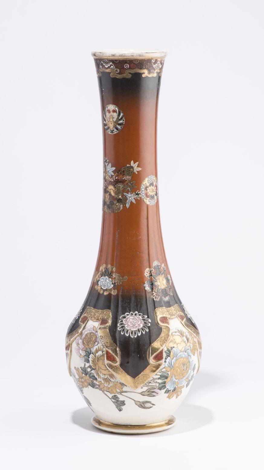 Céramique à décor de fleurs rouges, noires et crème et d'un drapé or, Japon, Satsuma, époque Meiji (1868-1912), H 50 cm