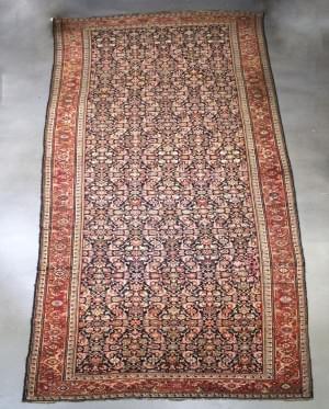 A décor de fleurons stylisés en semis sur fond noir, bordure rou...