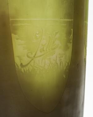 Verre multicouche dégagé à l'acide à décor de fleurs vertes sur...