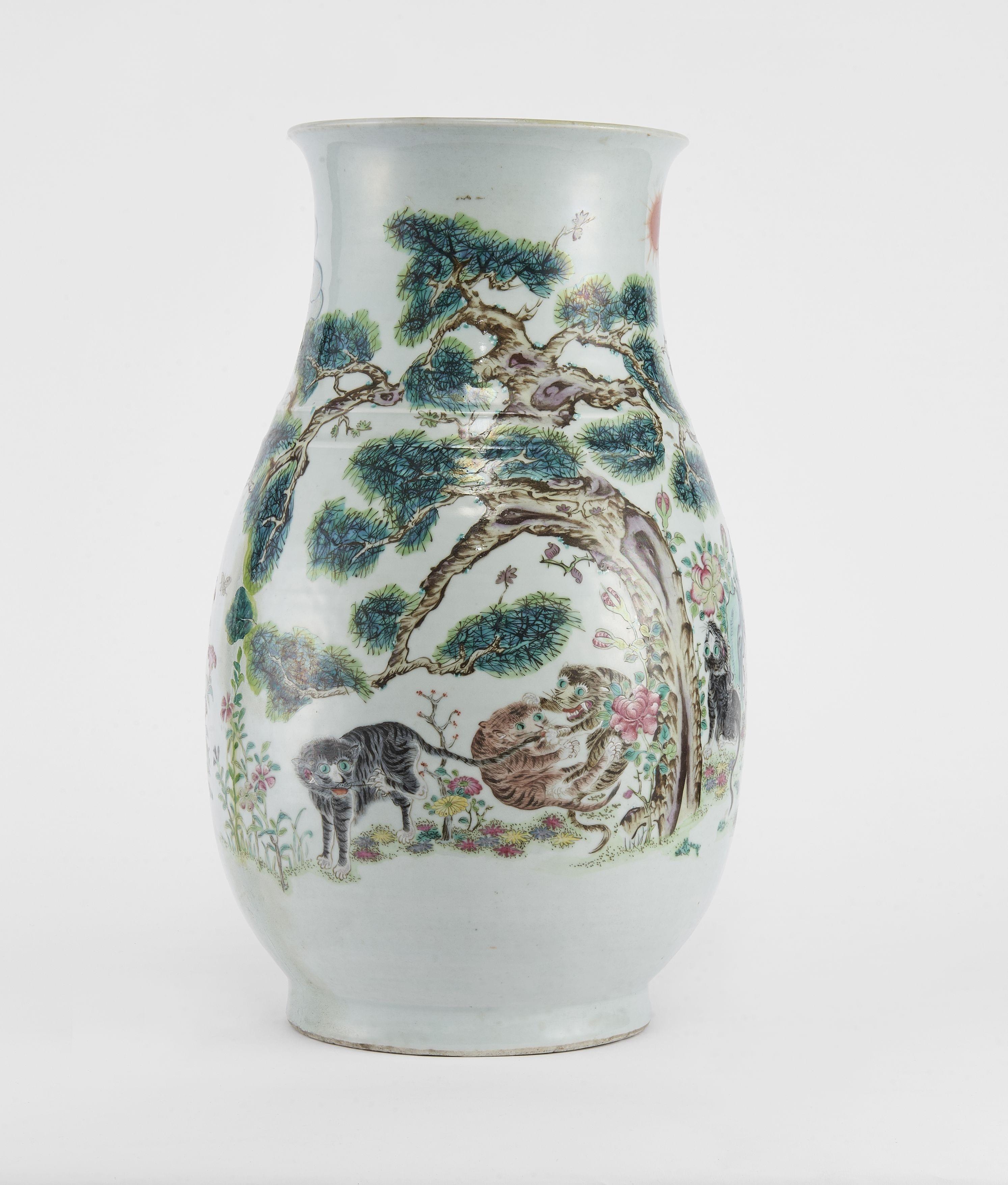 Porcelaine émaillée polychrome à décor de tigres jouant, H 46 cm