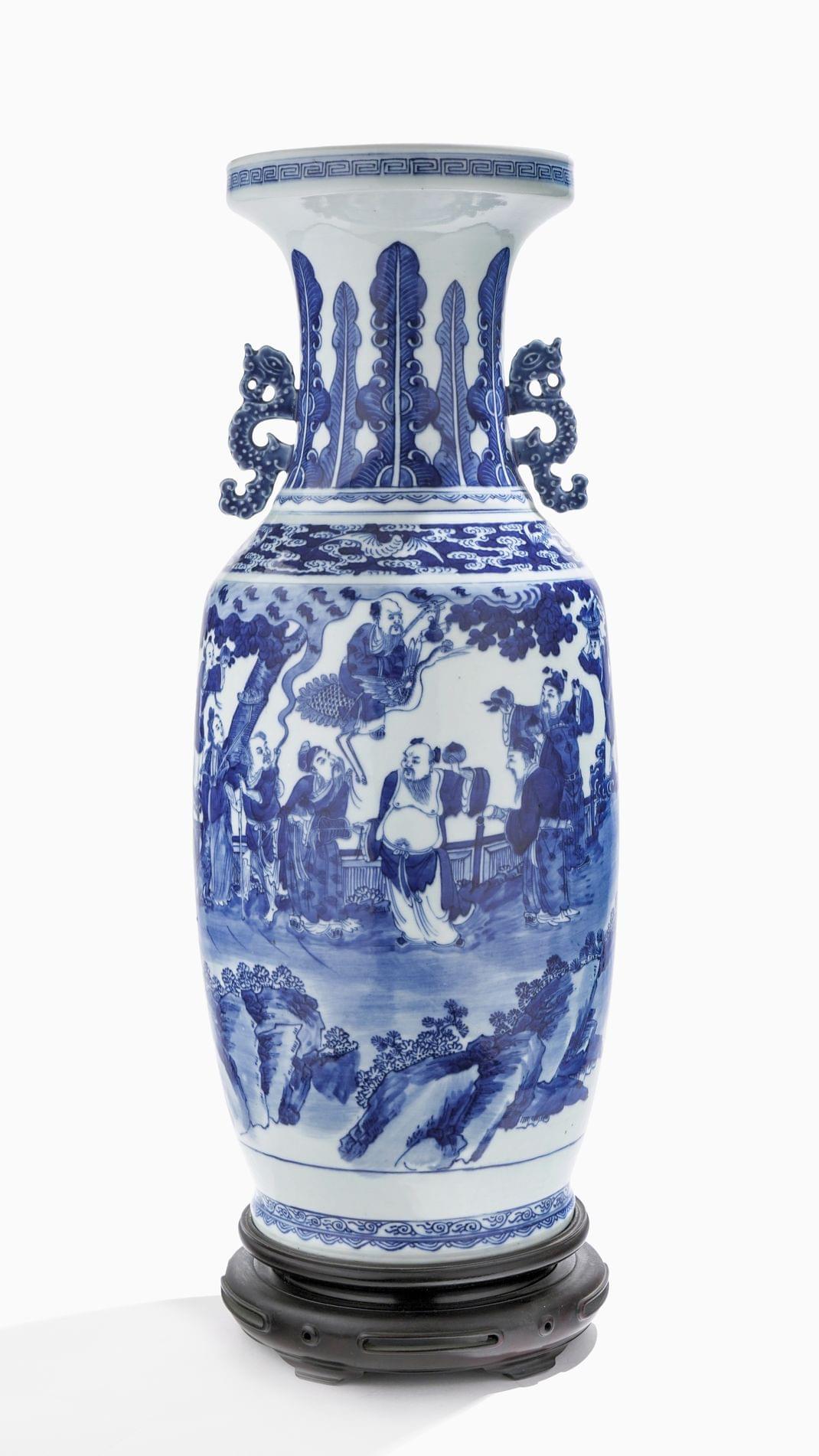 Porcelaine émaillée bleu blanc à décor des huit immortels et de Shou-Lao, H 64 cm