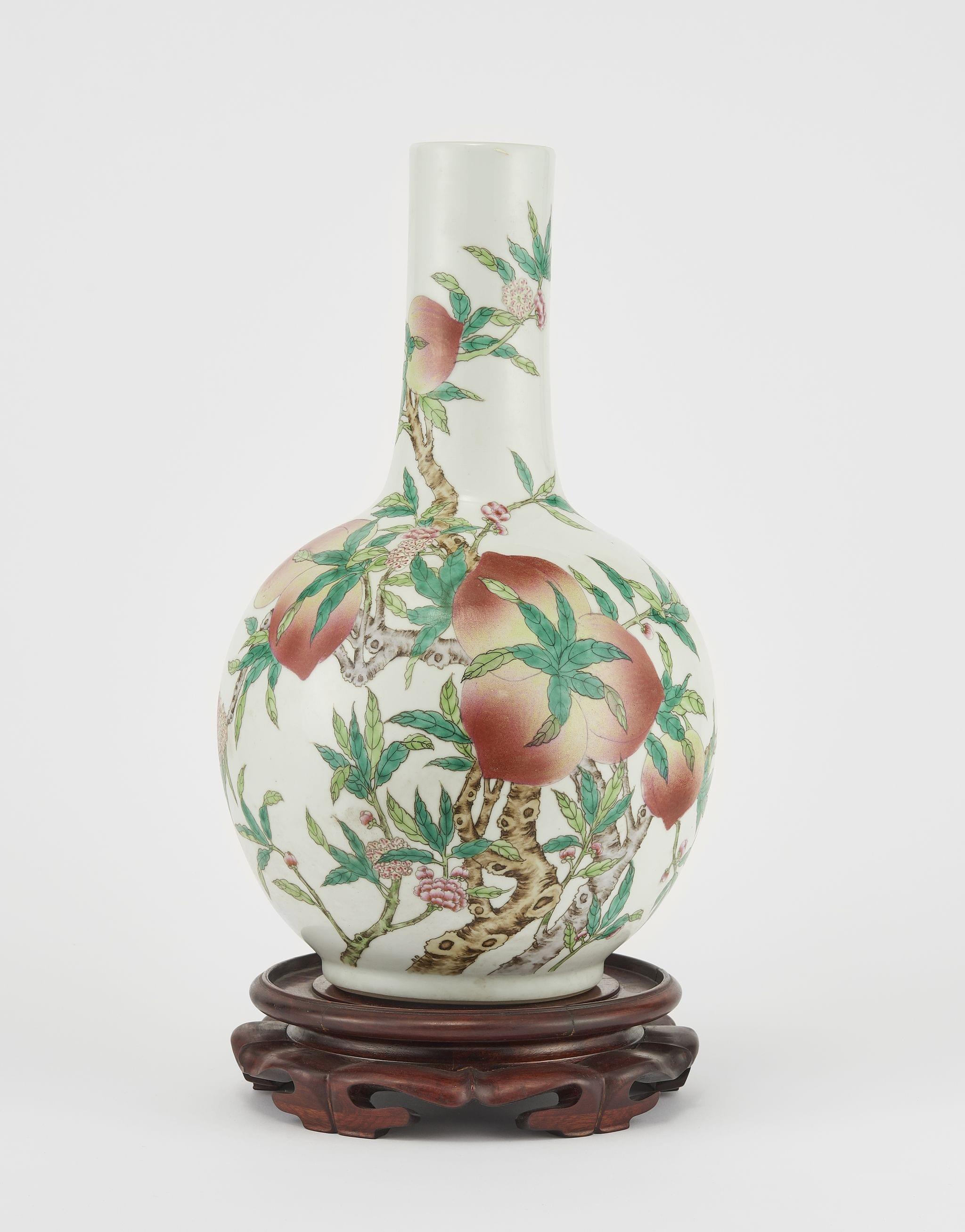 832. Grand vase de forme tianqiuping à décor des neuf pêches, Chine, marque et période Guangxu (1875-1908)