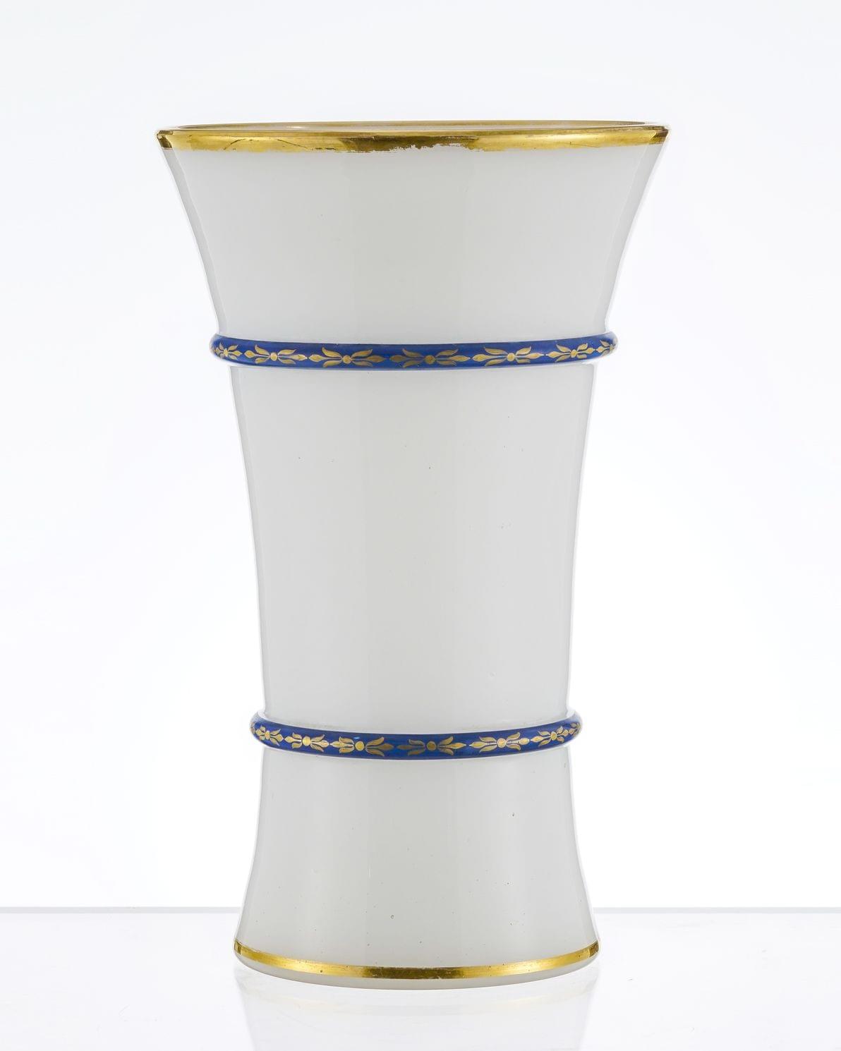Orné de deux anneaux bleu roi et filets or, H 30 cm