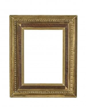 Stuc doré à décor d'une frise d'oves et placage de bois, 27x36,5