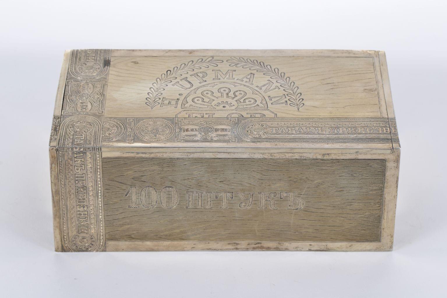 148. Grande boîte à cigares H. Upmann en trompe-l'œil de bois, ruban et inscriptions en cyrillique