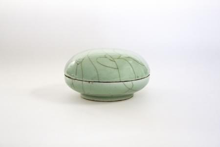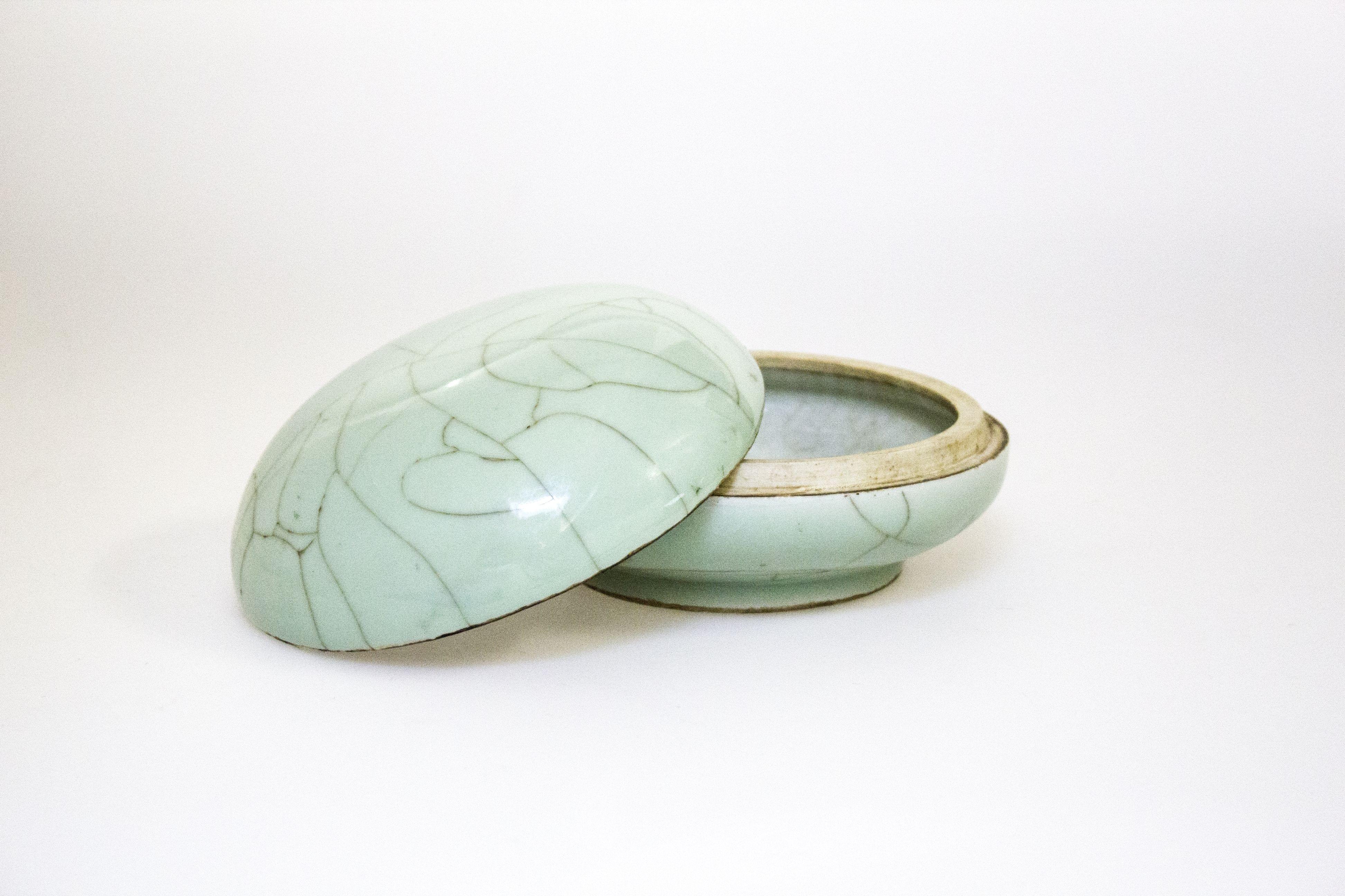 Céramique beige craquelée, signée Lejan, L 52 cm
