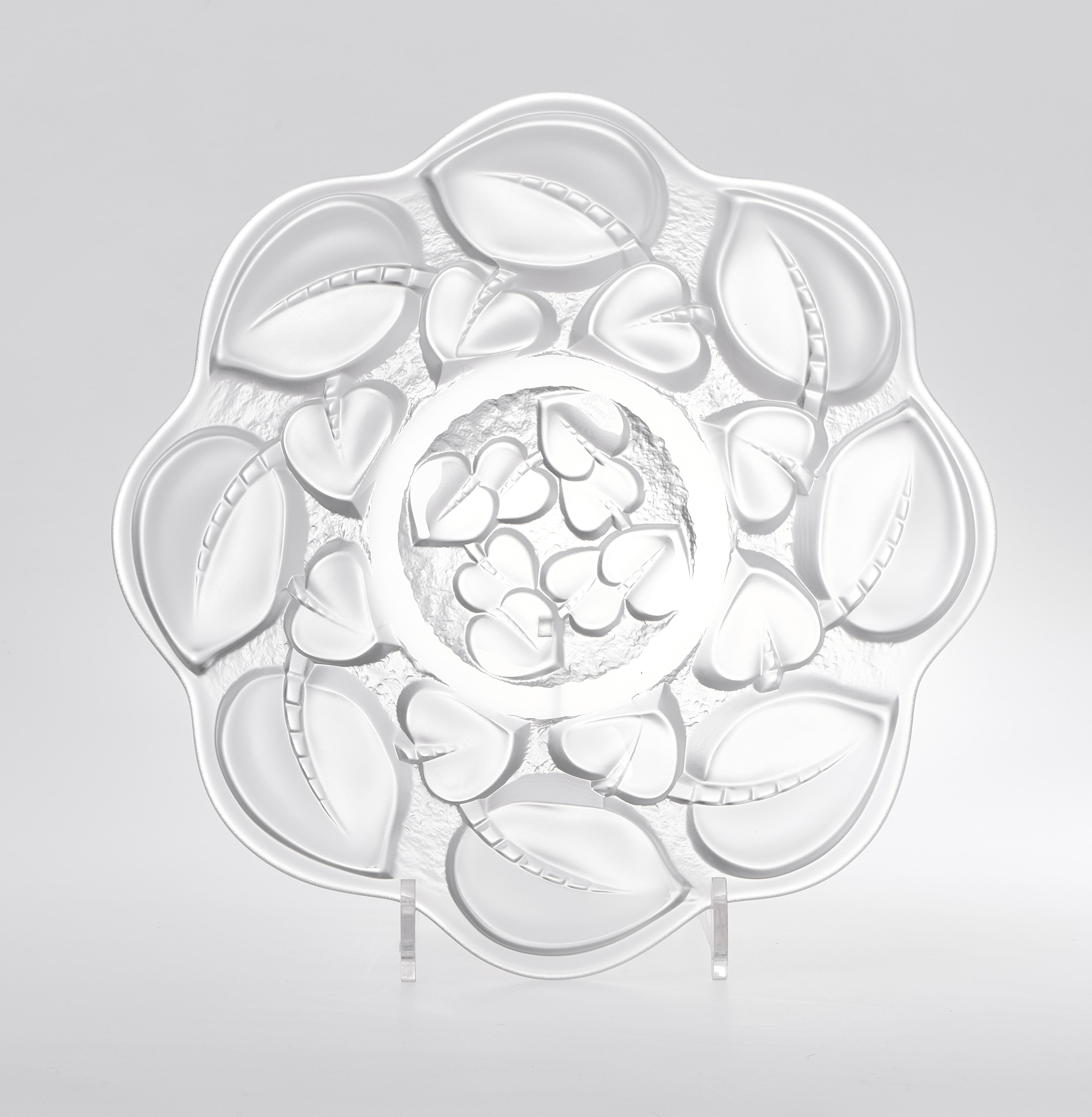 Cuivre et émaux polychromes sur fond bleu, D 38 cm