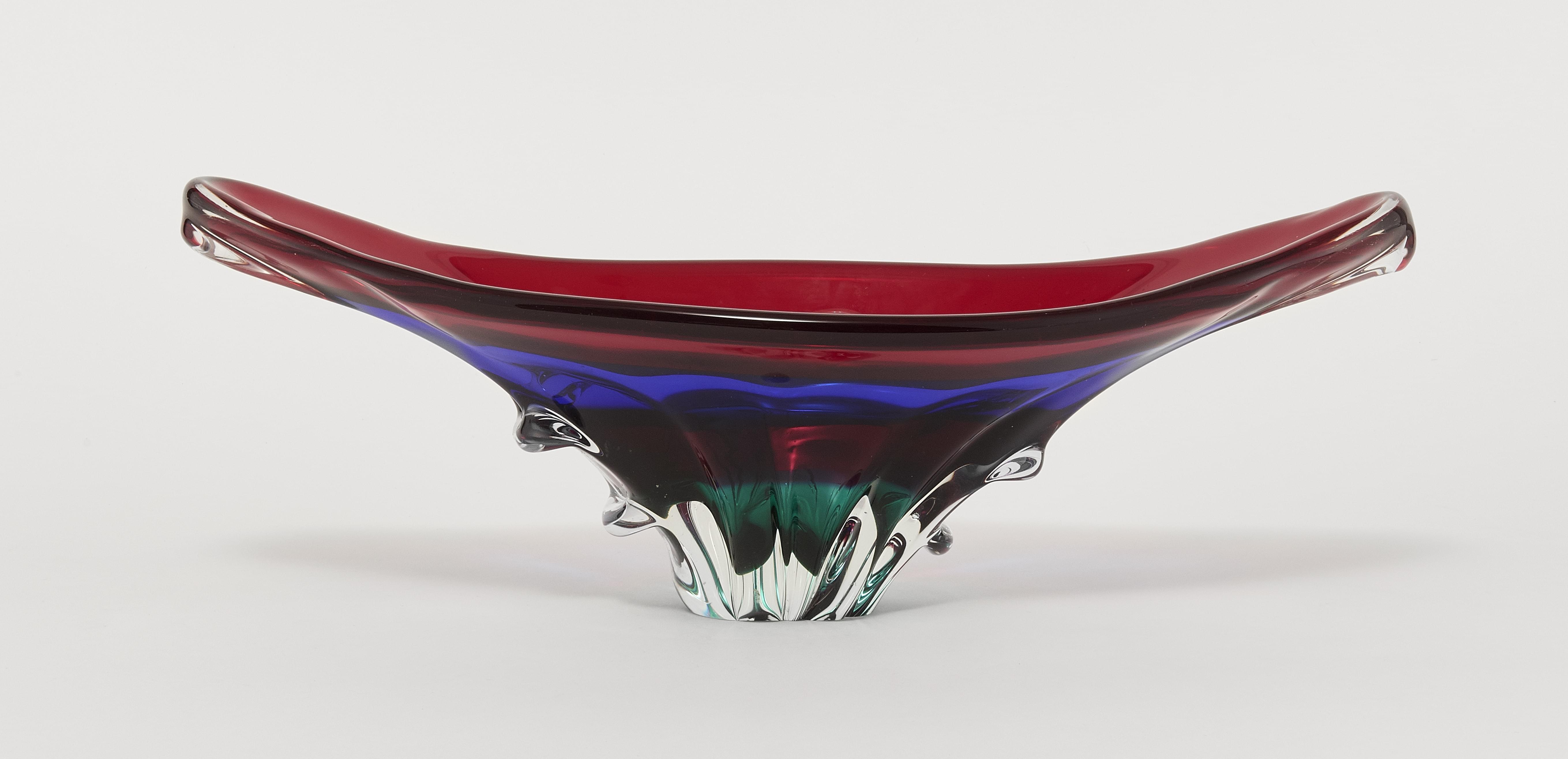 Cuivre et émaux polychromes sur fond bleu, D 38 cm