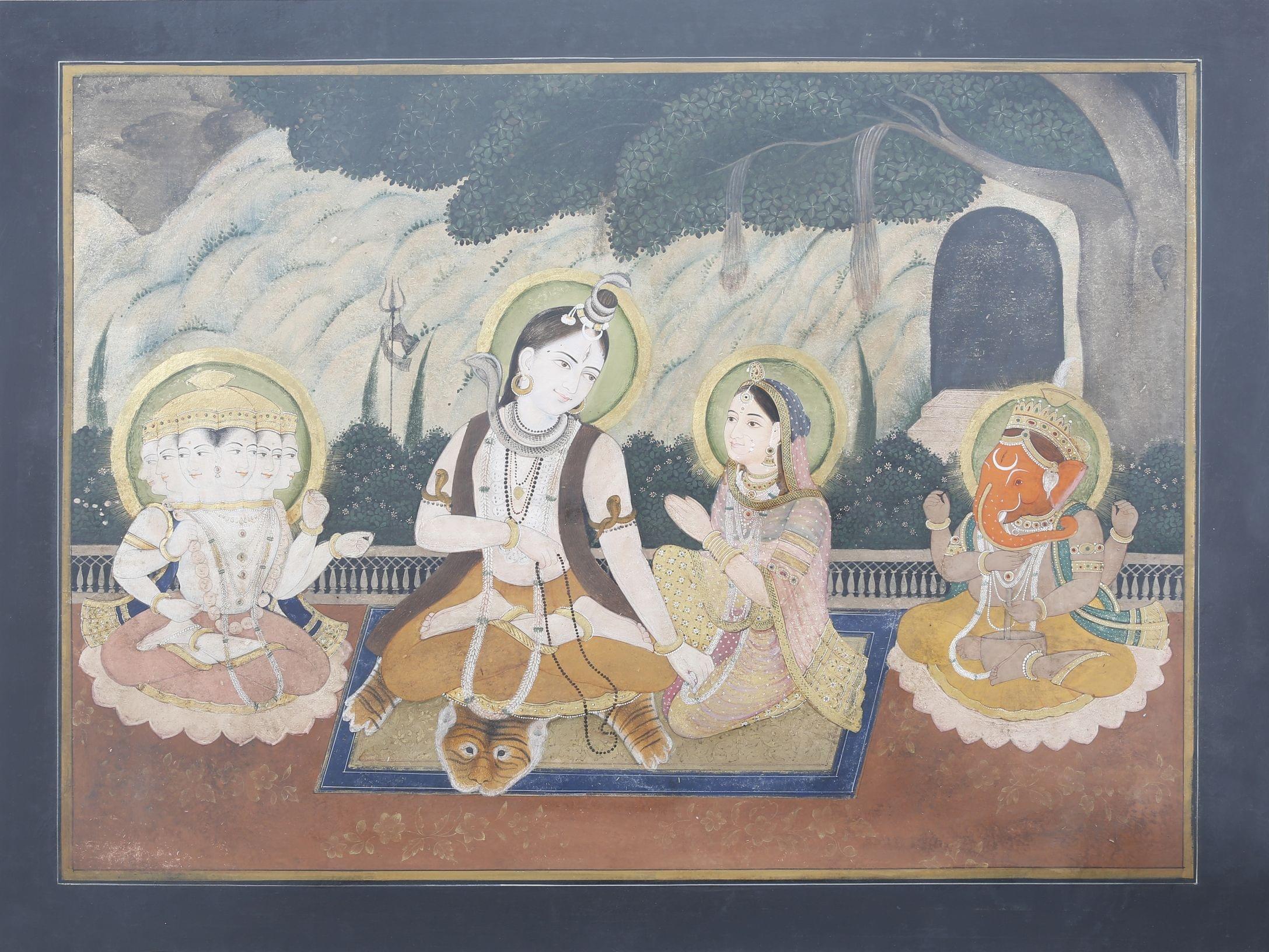 1096. Grande miniature figurant notamment Brahma, Vishnu et Ganesh, Inde, première moitié du XXe s