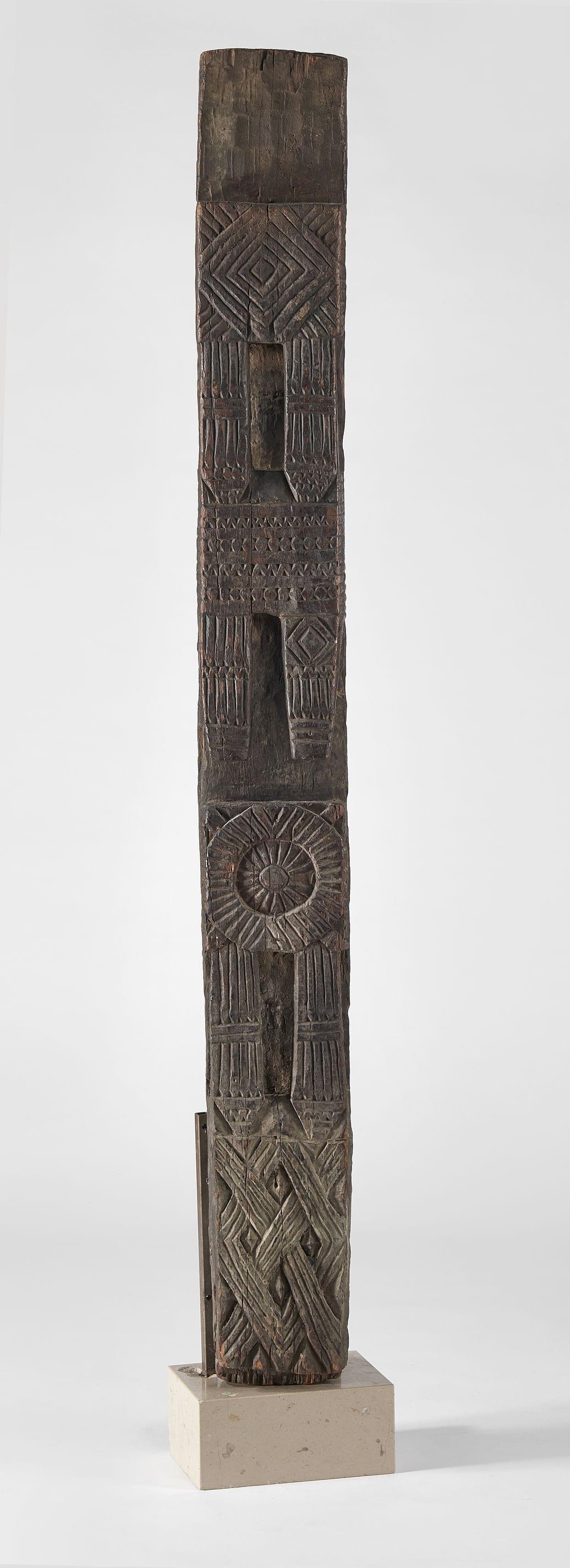 Bois laqué blanc et brun, pans coupés et motifs géométriques app...