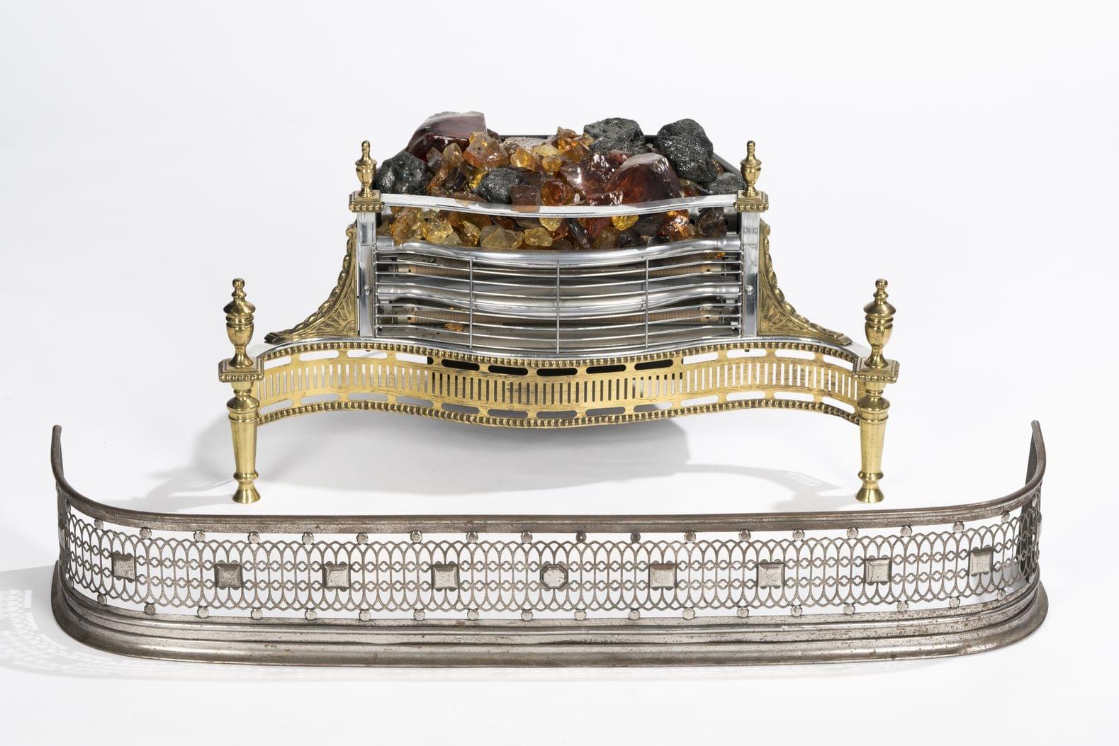Fer forgé et laiton. On joint l'élément central électrifié de style. L 108 cm